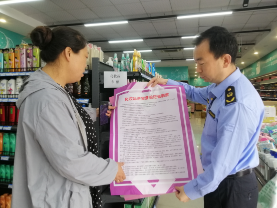 在宣传周期间,开展上门宣传活动,对化妆品经营者及使用者进行面对面宣讲《企业落实化妆品质量安全主体责任监督管理规定》,发放化妆品管理办法及相关知识汇编册,张贴《化妆品进货查验记录制度》、《化妆品经营“六应当”》和《化妆品经营“十不得”》等规范化经营的标准。